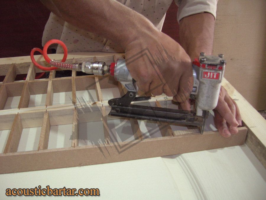نکته دیگر که باید توجه بسیاری به آن داشت این است که درب ها در اکثر مواقع روی چهارچوب خود کاملا منطبق نمی شوند و اين موضوع باعث ايجاد درز بين درب و چهارچوب خواهد شد. اين درزها در بعضي مواقع به حدي هستند که هرچقدر هم که داخل درب را با ایزوله قوی پوشش دهیم باز هم صدا به راحتي انتقال پیدا کند. ساخت درب آکوستیک با پشم سنگ بهمراه چهارچوب چوبي متناسب با درب بهترین روش برای حذف این شکاف ها مي باشد.